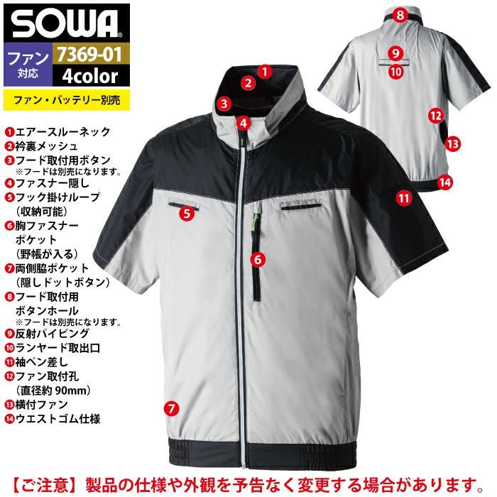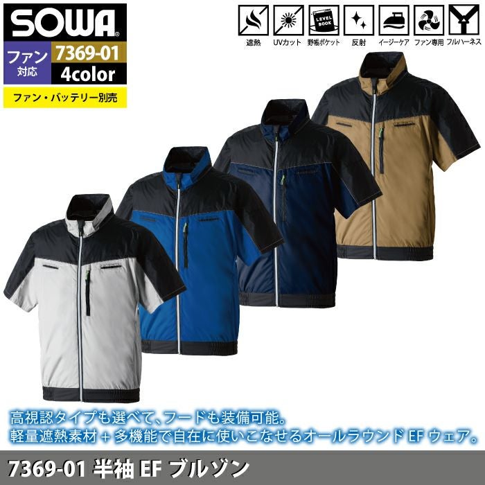 空調服 桑和 SOWA 作業服 作業着 ファン付きウェア(服のみ) 桑和 SOWA 作業服 7369-01 半袖EFブルゾン S-LL 作業着 春夏