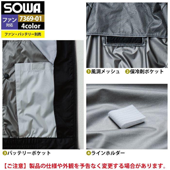 空調服 桑和 SOWA 作業服 作業着 ファン付きウェア(服のみ) 桑和 SOWA 作業服 7369-06 EFベスト 4L 作業着 春夏