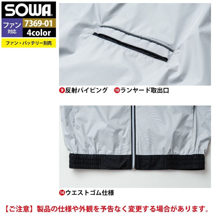 空調服 桑和 SOWA 作業服 作業着 ファン付きウェア(服のみ) 桑和 SOWA 作業服 7369-01 半袖EFブルゾン 8L 作業着 春夏