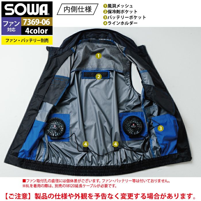 空調服 桑和 SOWA 作業服 作業着 ファン付きウェア(服のみ) 桑和 SOWA 作業服 7369-06 EFベスト 8L 作業着 春夏