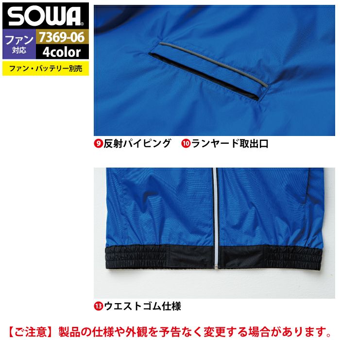 空調服 桑和 SOWA 作業服 作業着 ファン付きウェア(服のみ) 桑和 SOWA 作業服 7369-06 EFベスト S-LL 作業着 春夏