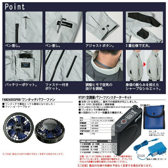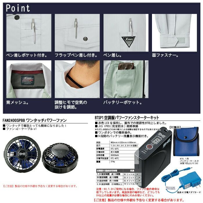 空調服 電動ファン 作業服 XEBEC 空調服 電動 ファン対応 春夏用 ジーベック 作業服 作業着 XE98009setR2 半袖ブルゾン ファンとバッテリセット SS-5L 作業服 空調服
