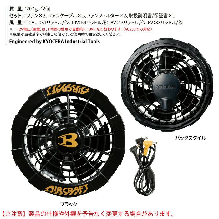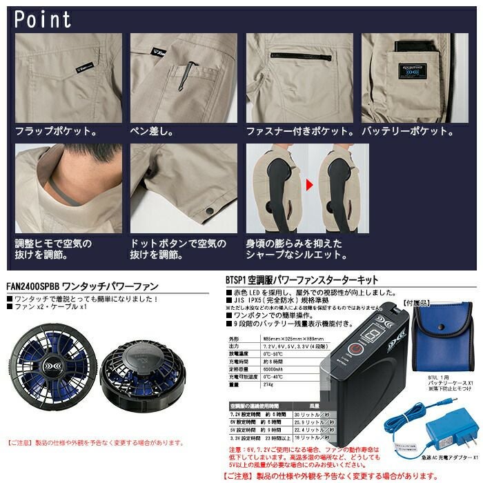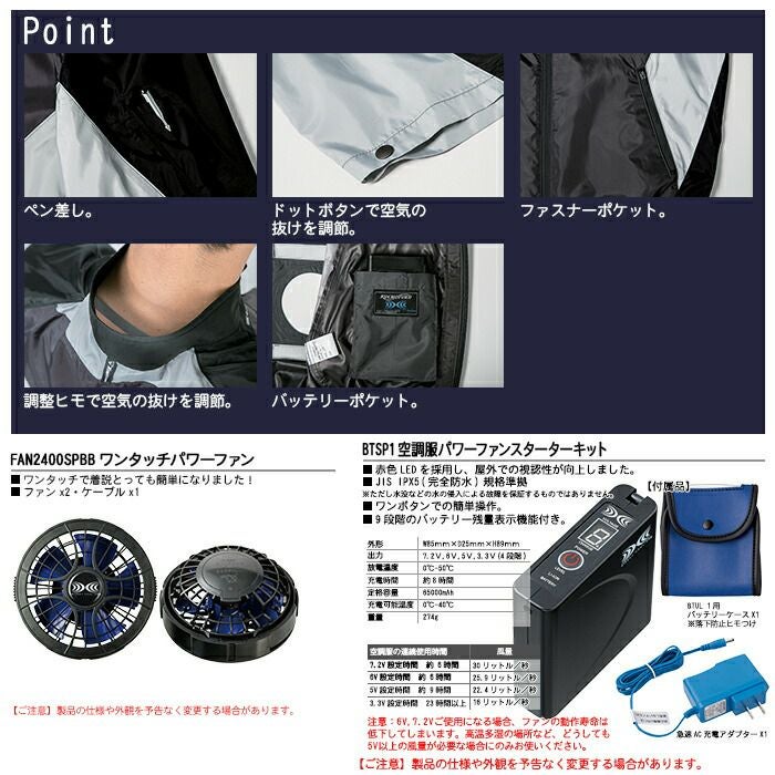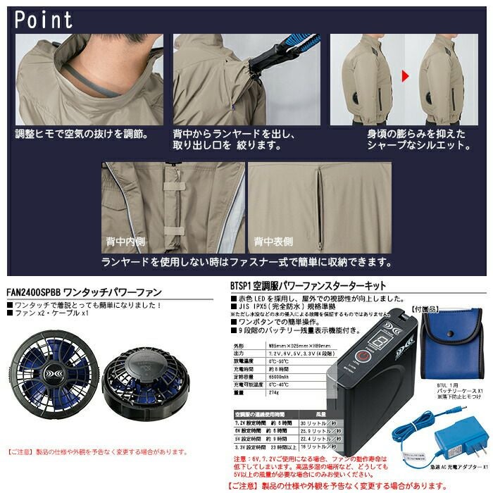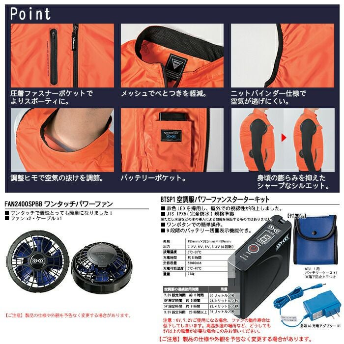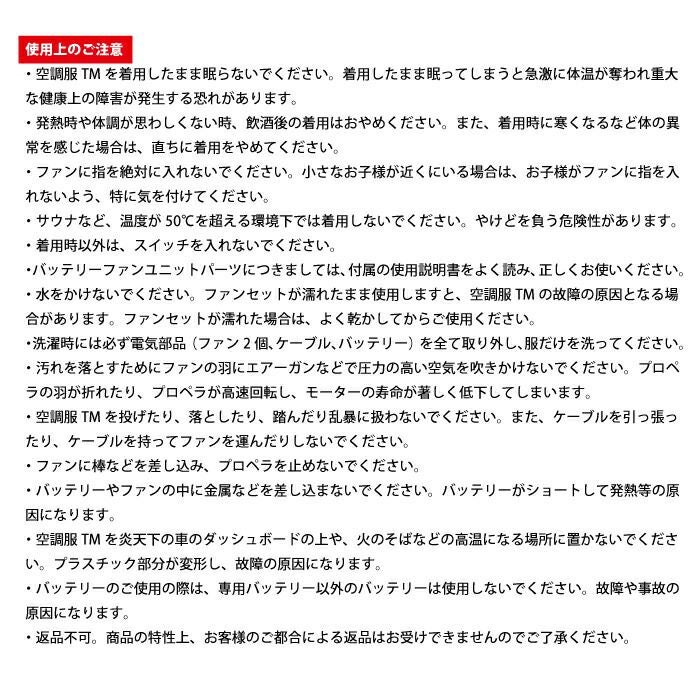 ※同一メーカーの「バッテリー」+「ファン」+「ウェア」でお使いください