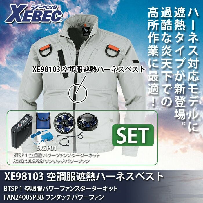 空調服 電動ファン 作業服 XEBEC 空調服 電動 ファン対応 春夏用 ジーベック 作業服 作業着 XE98103setR2 遮熱ハーネスブルゾン ファンとバッテリセット S-5L 作業服 空調服