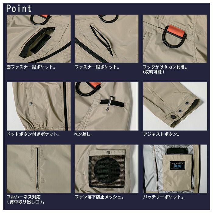 「ファン付きウェア」は電動ファンの取付ができるウェアの総称です