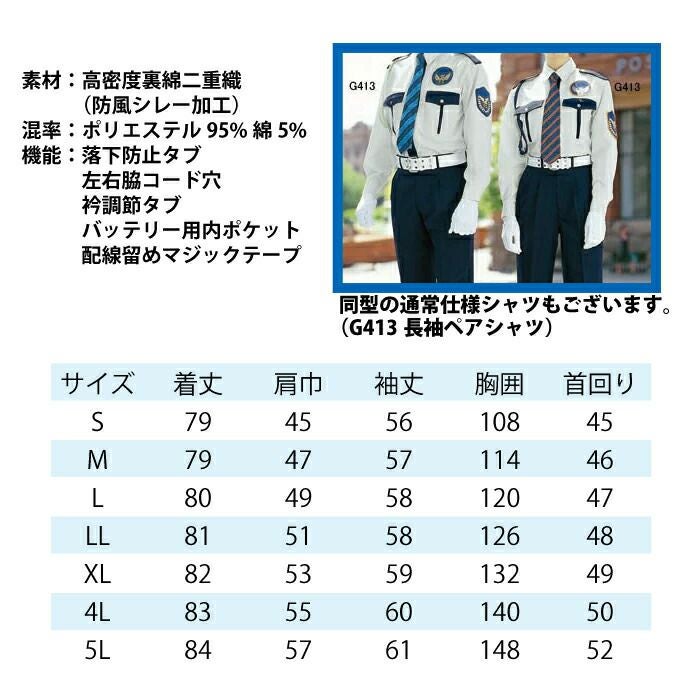 警備服・防犯商品 ファン対応ウェア G-best GK413setR2 長袖警備服 ファンとバッテリセット S-5L ワッペンや吊紐は付属なし