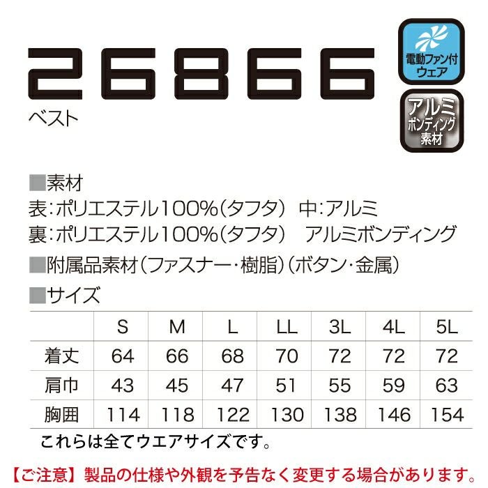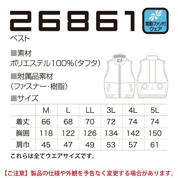 作業着 空調服 電動ファン 熱中症 ベスト 涼しい ファン付きウェア (服のみ) クロダルマ 作業服 26866 空調エアセンサー対応ベスト S-5L 春夏用