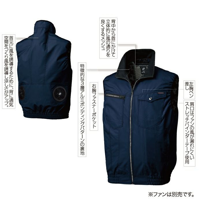 作業着 空調服 電動ファン 熱中症 ベスト 涼しい ファン付きウェア (服のみ) クロダルマ 作業服 26861 空調エアセンサーベスト M-5L 春夏用
