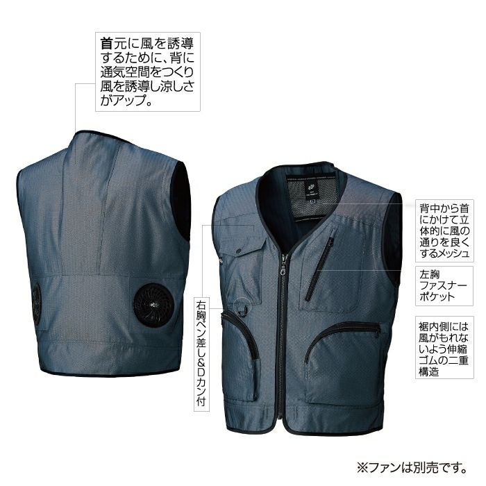 作業着 空調服 電動ファン 熱中症 ベスト 涼しい ファン付きウェア (服のみ) クロダルマ 作業服 26869 空調エアセンサー対応ユーティリティベスト S-5L 春夏用