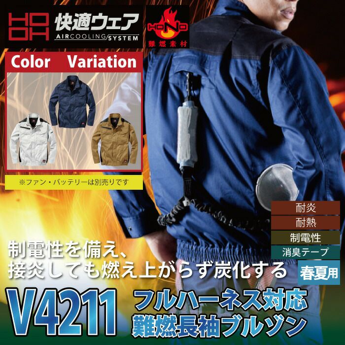 空調服 村上被服 HOOH 鳳凰 作業服 作業着 ファン付きウェア (服のみ) 村上被服 HOOH 鳳凰 作業服 V4211 フルハーネス対応難燃長袖ブルゾン S-3L