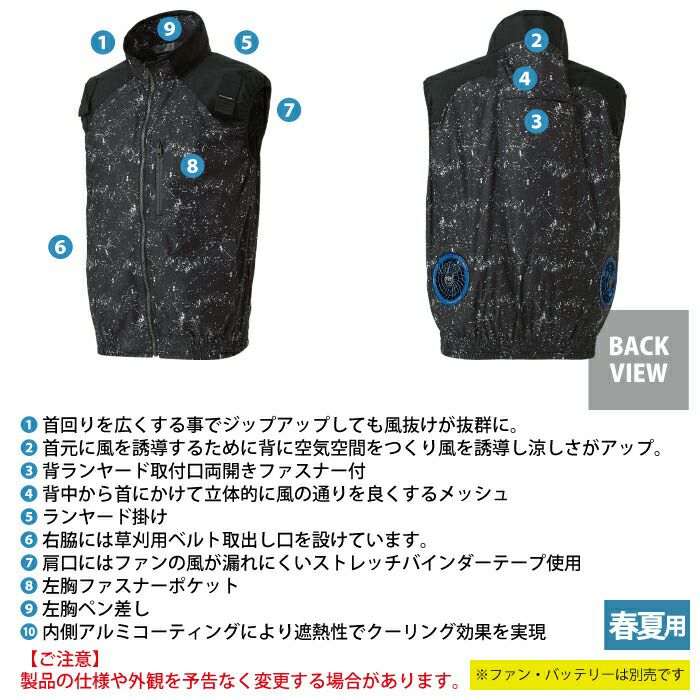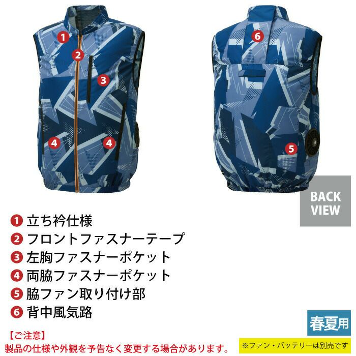 空調服 電動ファン付きウェア 作業服 作業着 ファン付きウェア (服のみ) 春夏 サンエス 作業服 KF92372 ベスト M-5L 作業着