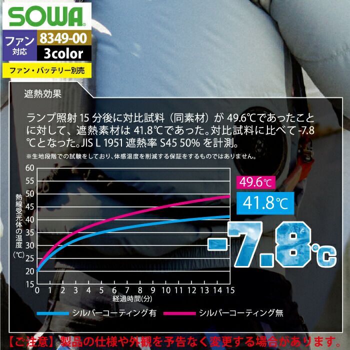 空調服 桑和 SOWA 作業服 作業着 ファン付きウェア (服のみ) 桑和 SOWA 春夏用 作業服 作業着 8349-01 EF用半袖ブルゾン S-LL