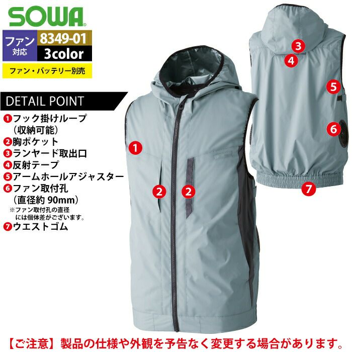 空調服 桑和 SOWA 作業服 作業着 ファン付きウェア (服のみ) 桑和 SOWA 春夏用 作業服 作業着 8349-06 EF用ベスト 3L