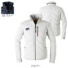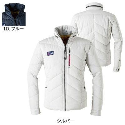 ●関連商品※9216ベスト●秋冬用●素材:[表面/両サイド染めCVCツイル]綿75%・ポリエステル25% [中綿]ポリエステルフェイクダウン [裏面/ポリエステルタフタ]ポリエステル100%●左胸ロゴ入りの縦型ファスナーポケット、デザイン性の高いキルトワーク、個性的なスタイルの衿デザイン、左胸内ポケットつき●サイズ:S(胸囲/110、肩幅/45、着丈/63、袖丈/63、裾囲/104)、M(胸囲/114、肩幅/47、着丈/65、袖丈/65、裾囲/108)、L(胸囲/120、肩幅/49、着丈/67、袖丈/67、裾囲/114)、LL(胸囲/126、肩幅/51、着丈/69、袖丈/69、裾囲/120)、3L(胸囲/132、肩幅/53、着丈/70、袖丈/70、裾囲/126)●カラー:シルバー、IDブルー