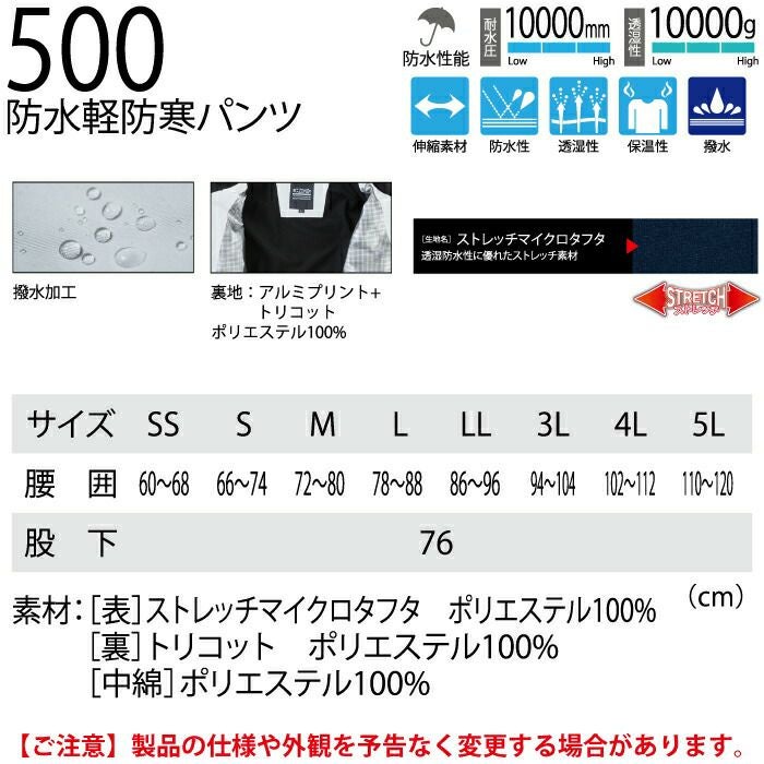 【500 防水軽防寒パンツ】