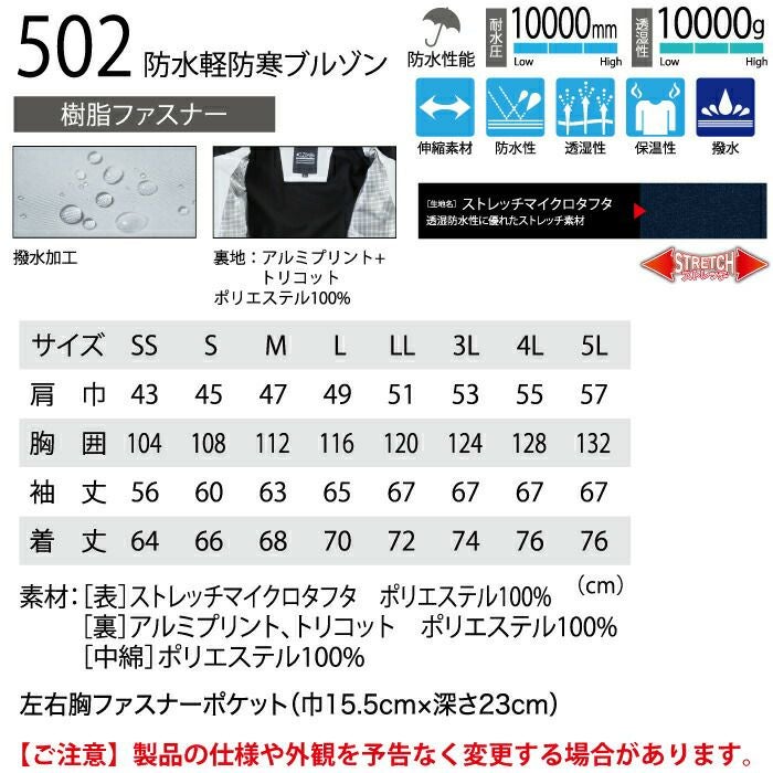 【502 防水軽防寒ブルゾン】