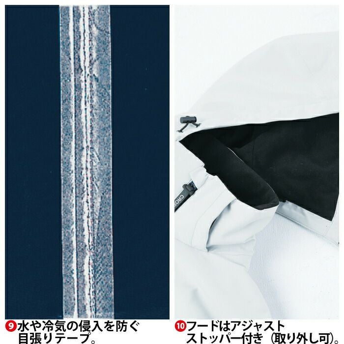 ◇ 水の浸入を防ぐ目貼り仕様 止水ファスナー仕様 防風性に優れた防水ラミネート