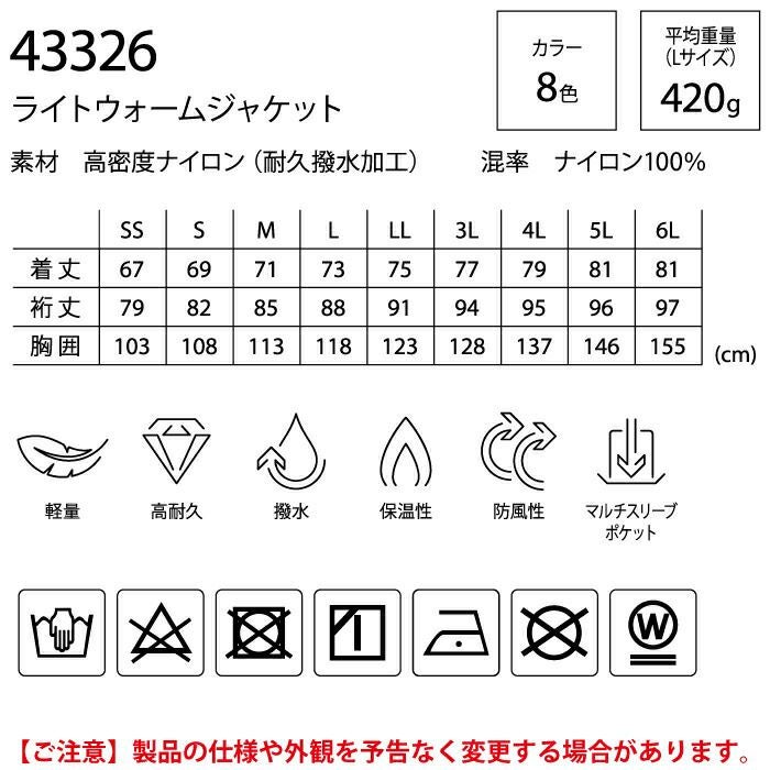 藤和 TSDESIGN 作業服 秋冬用 43326 ライトウォームジャケット 5L-6L