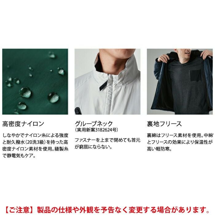 ◇裏綿はフリース素材を使用。中綿とフリースの効果により保温性が高い軽防寒。