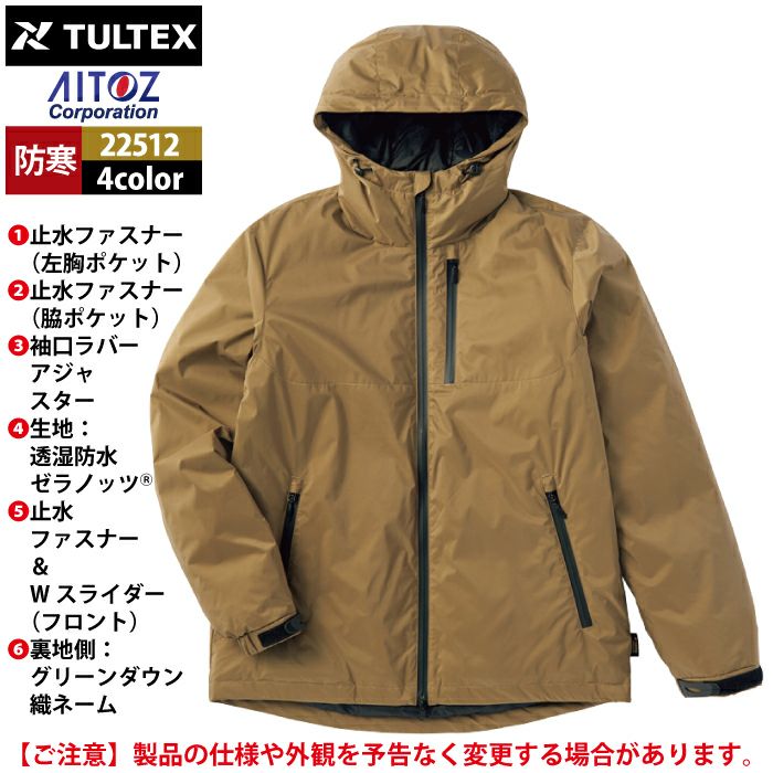アイトス Aitoz 作業服 作業着 作業ズボン アウトドア 秋冬用 アイトス Aitoz 22512 ゼラノッツグリーンダウンジャケット(メンズ) M-3L