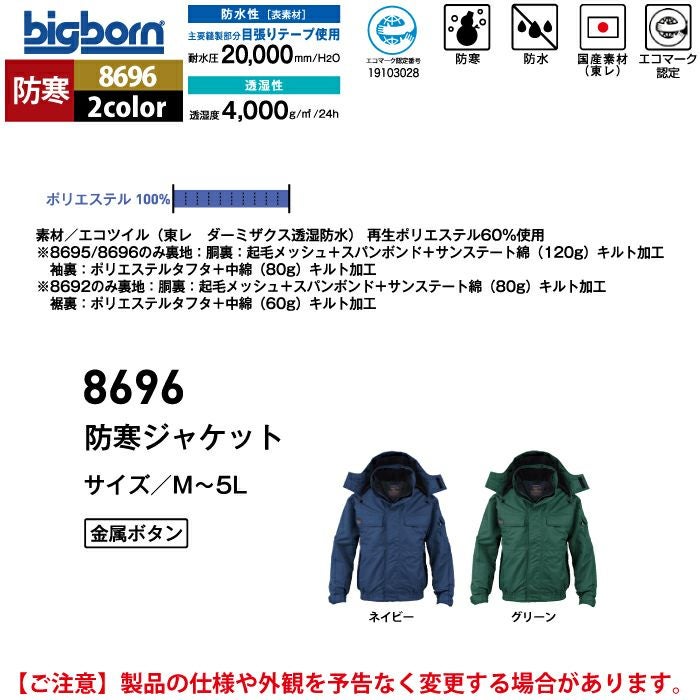 ビッグボーン bigborn 作業服 防寒着 8696 防寒ジャケット 5L 秋冬 作業着