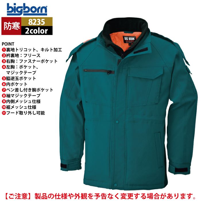 ビッグボーン bigborn 作業服 防寒着 8235 防寒コート 3L 秋冬 作業着