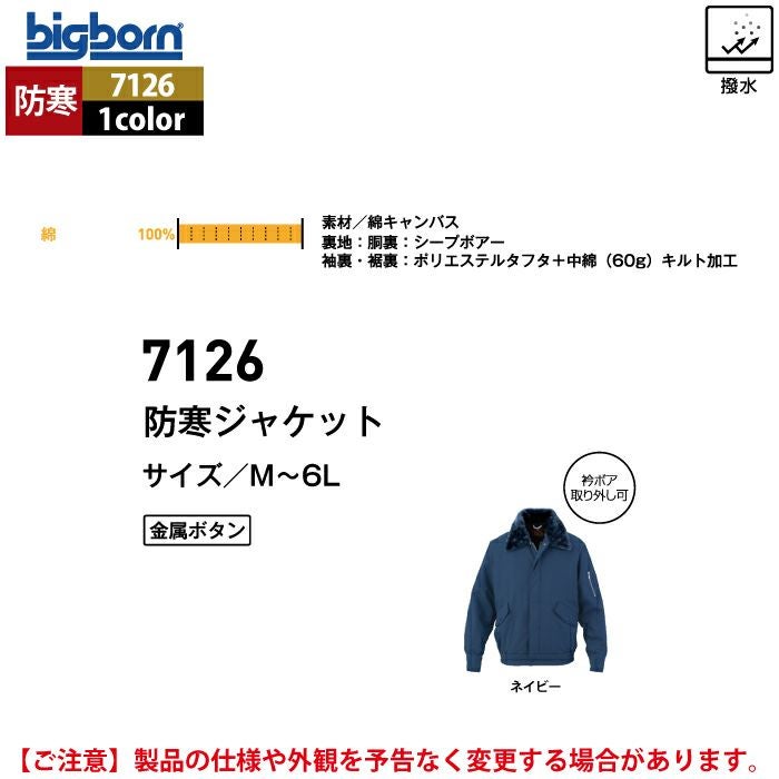 作業服 作業着 ビッグボーン bigborn 作業服 防寒着 7126 防寒ジャケット 4L 秋冬 作業着