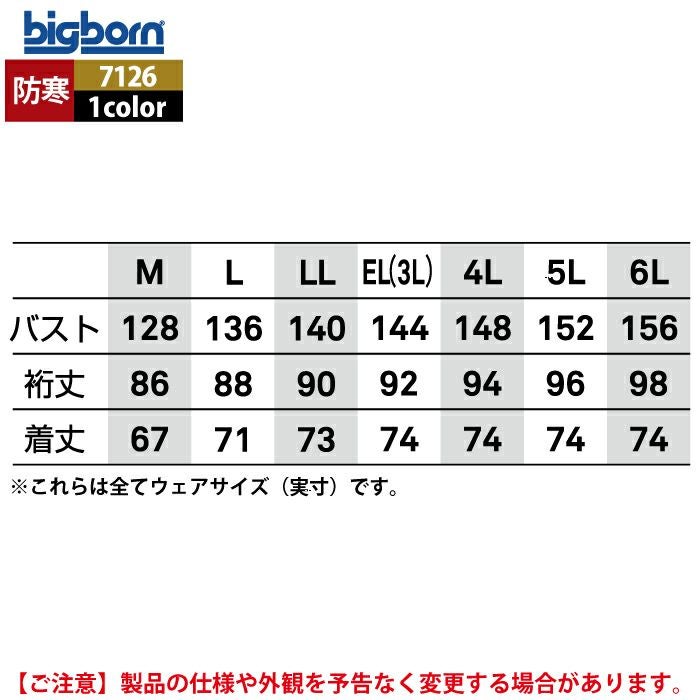 ビッグボーン bigborn 作業服 防寒着 7126 防寒ジャケット 4L 秋冬 作業着