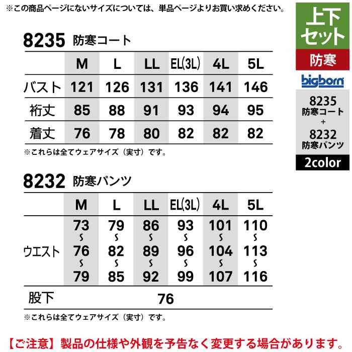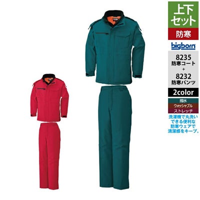 ビッグボーン bigborn 作業服 上下セット 8235 防寒コートM-3L と 8232 防寒パンツ M-3L 作業着 作業ズボン