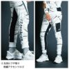 ◇機能:高級感 3Dレタリングワッペン ストレッチ性 動きにフィット 縦型大型ファスナー付右カーゴポケット 左側ファスナー付異素材カーゴポケット 右足に縁取り刺繍