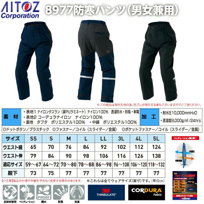 アイトス Aitoz 作業服 作業着 作業ズボン アイトス 作業服 防寒着 Aitoz 秋冬用 AZ-8977 防寒パンツ(男女兼用) SS-LL