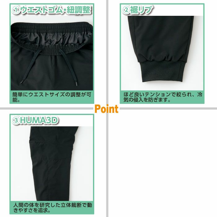 アイトス Aitoz 作業服 作業着 作業ズボン アイトス 作業服 防寒着 Aitoz 秋冬用 AZ-10318 HUMA3Dストレッチ軽防寒パンツ(男女兼用) 5L