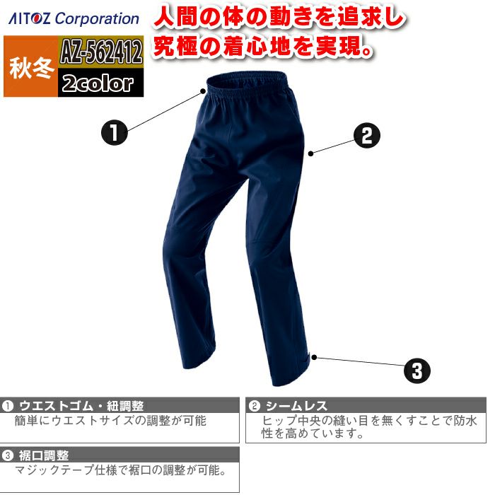 アイトス Aitoz 作業服 作業着 作業ズボン アイトス 作業服 防寒着 Aitoz 秋冬用 AZ-562412 原着全天候型ストレッチパンツ(男女兼用) SS-LL