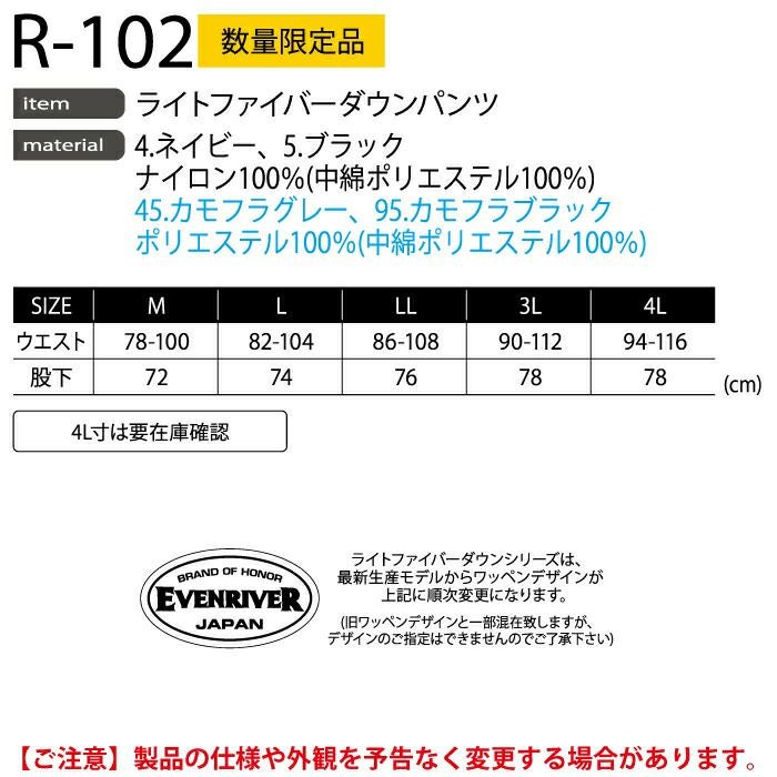 イーブンリバー 作業服 作業着 作業ズボン イーブンリバー EVENRIVER 作業服 防寒着 R-102 ライトファイバーダウンパンツ M-4L 秋冬用 作業着 おしゃれ 作業ズボン
