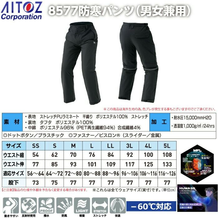 アイトス Aitoz 作業服 作業着 作業ズボン アイトス 作業服 防寒着 Aitoz 秋冬用 AZ-8577 防寒パンツ(男女兼用) 3L