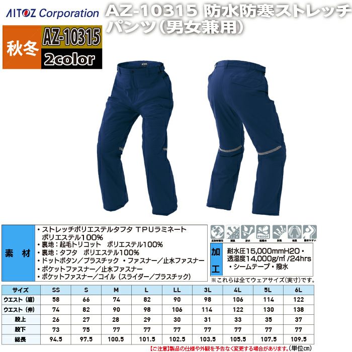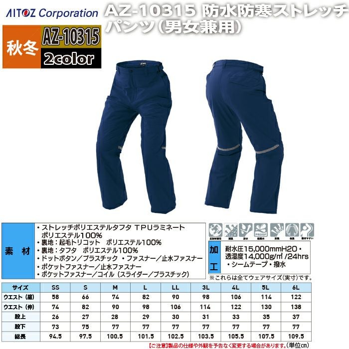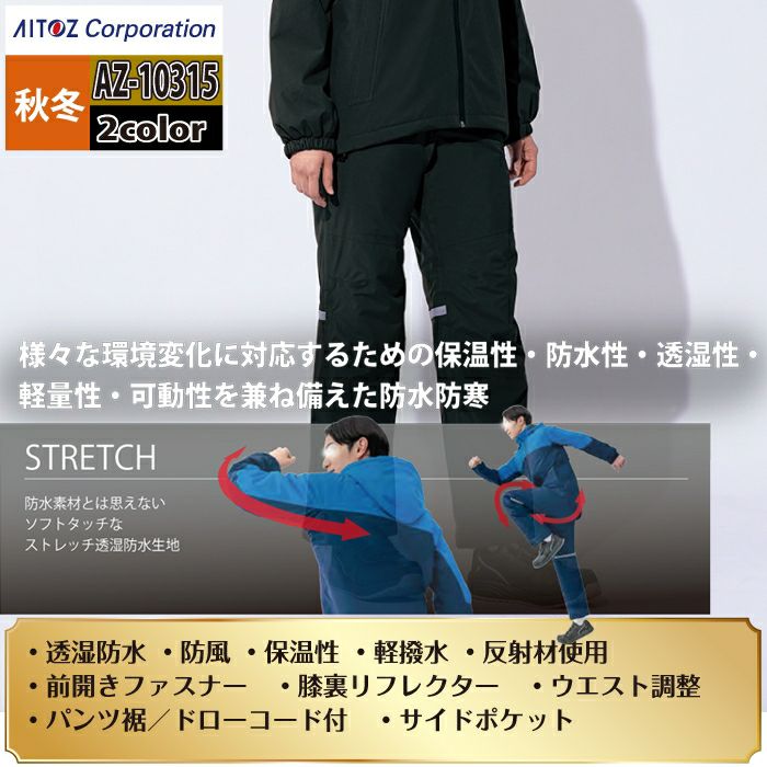 アイトス Aitoz 作業服 作業着 作業ズボン アイトス 作業服 防寒着 Aitoz 秋冬用 AZ-10315 防水防寒ストレッチパンツ(男女兼用) 6L