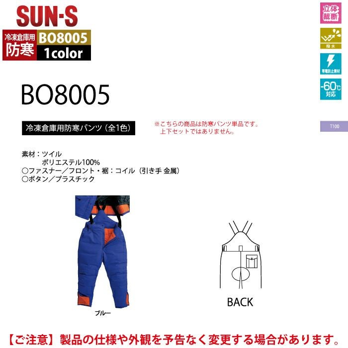 作業服 作業着 作業ズボン サンエス 作業服 防寒着 BO8005 冷凍倉庫用防寒パンツ 4L 秋冬 作業ズボン 作業着