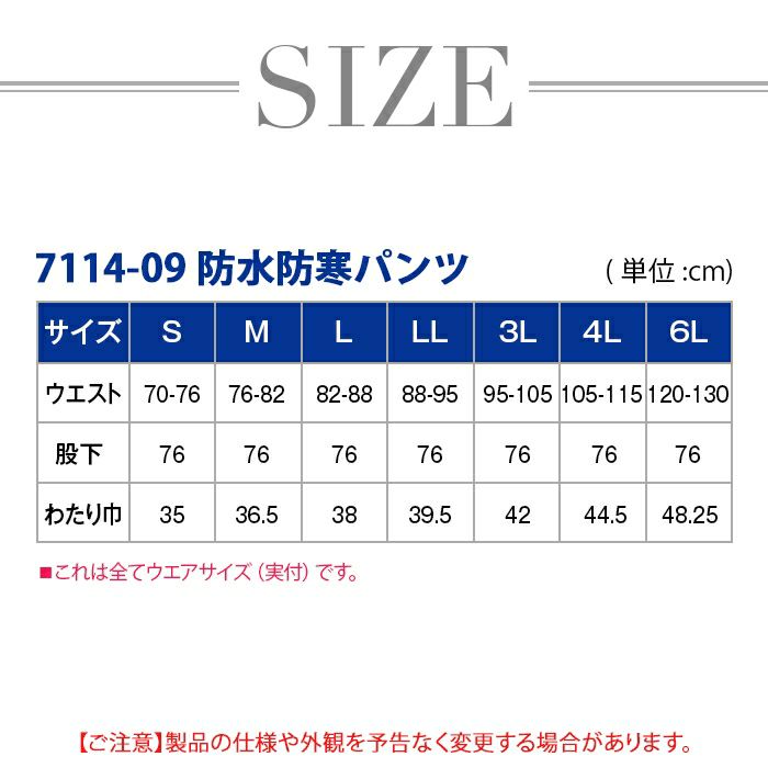 桑和 SOWA 作業服 作業着 作業ズボン 桑和 SOWA 作業服 7114-09 防水防寒パンツ 6L 作業服 秋冬用