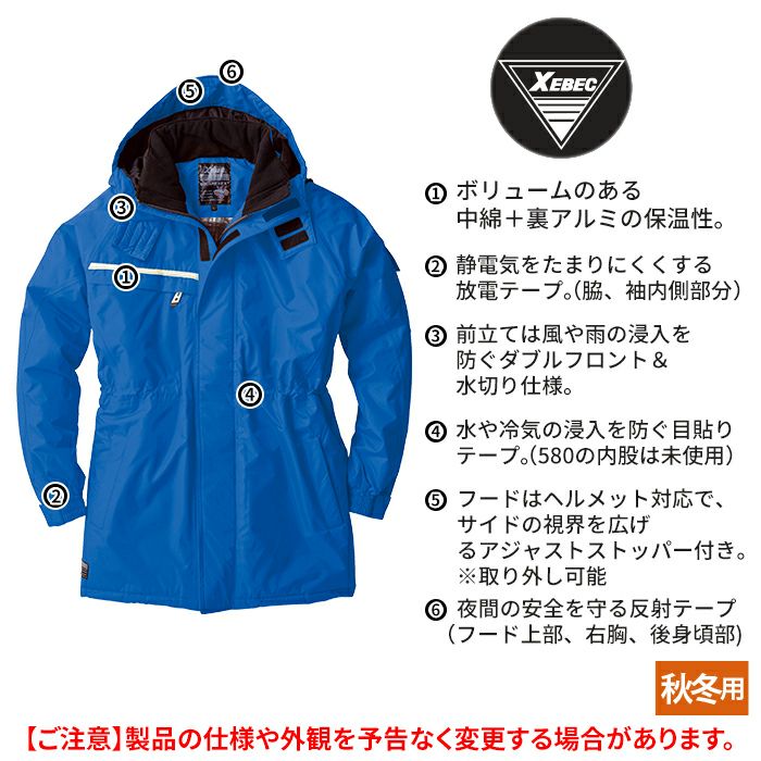 ジーベック XEBEC 作業服 作業着 作業ズボン ジーベック XEBEC 作業服 秋冬用 581 防水防寒コート M-LL 作業着