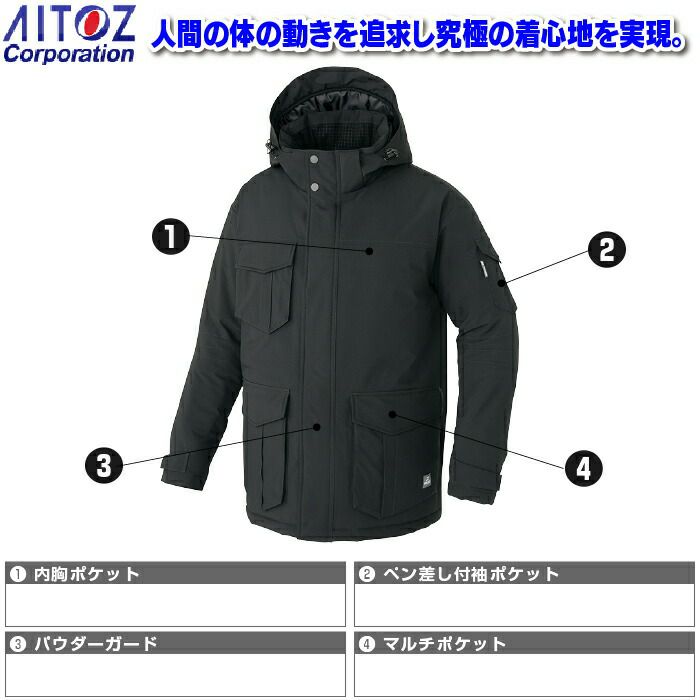 アイトス 作業服 防寒着 Aitoz 秋冬用 AZ-8575 防寒コート(男女兼用) 4L
