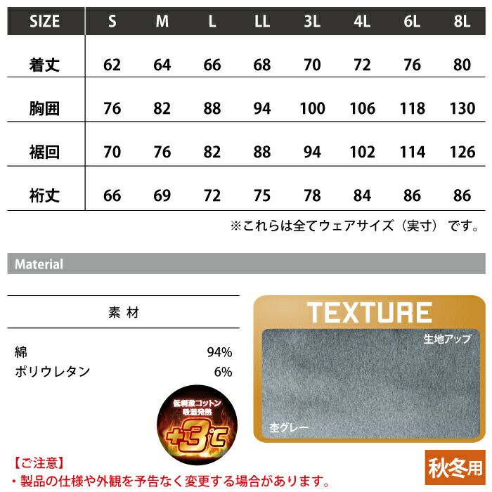 作業服 作業着 自重堂 Z-DRAGON 作業服 インナー 78174 ロングスリーブ SS-LL 防寒着 秋冬用 作業着