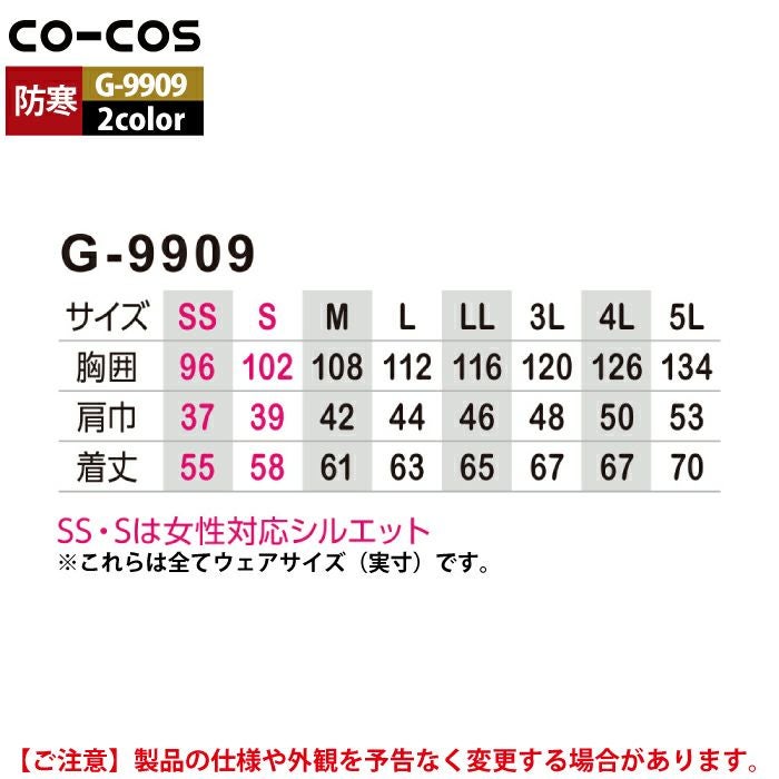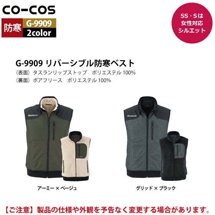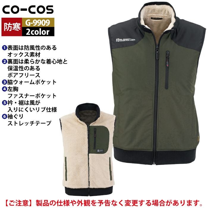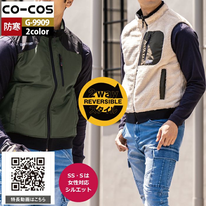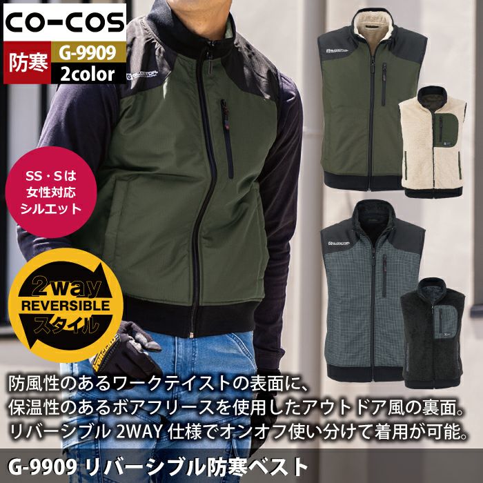 コーコス 作業服 作業着 作業ズボン 防寒着 秋冬用 コーコス G-9909 リバーシブル防寒ベスト SS-LL