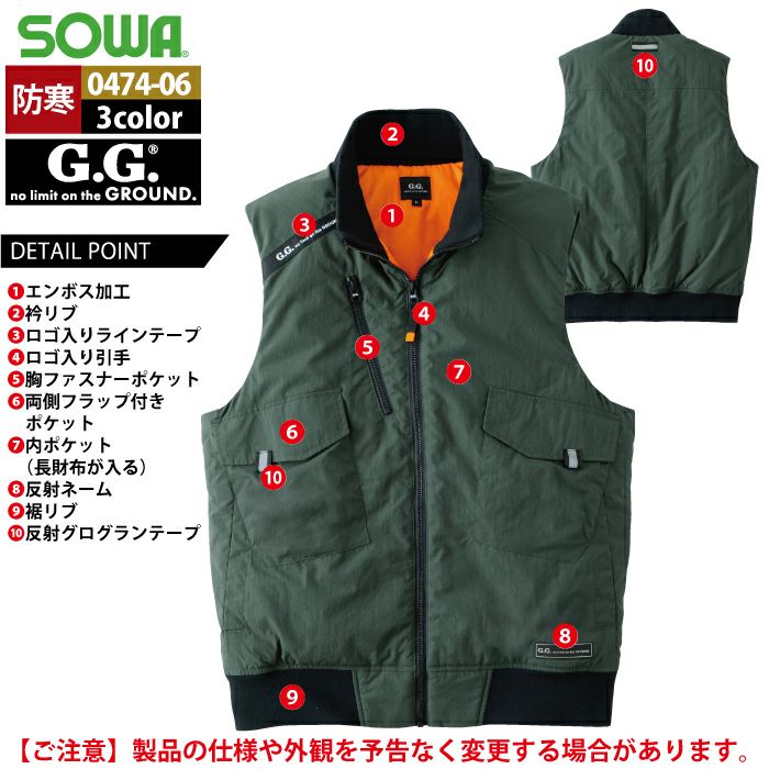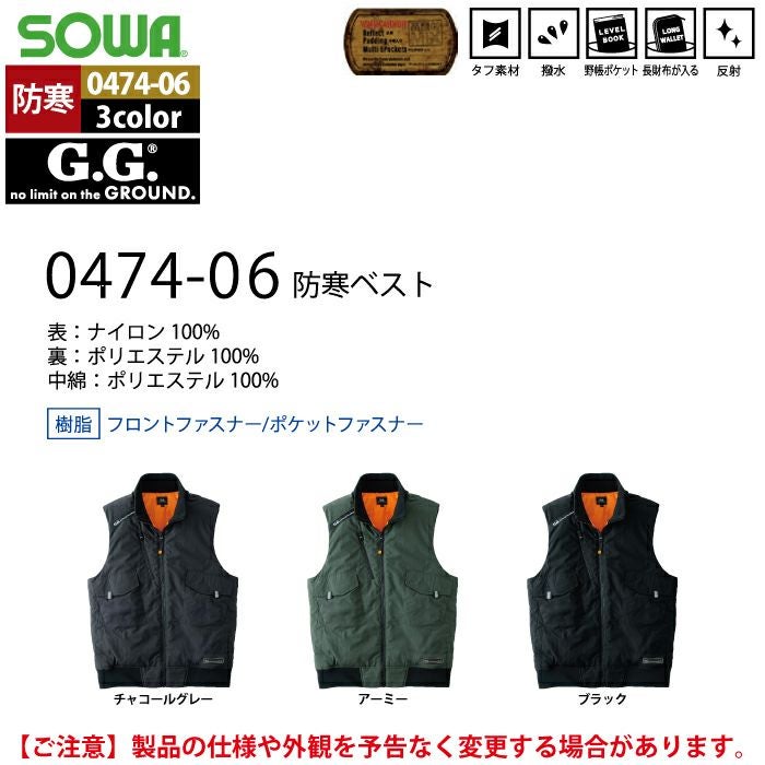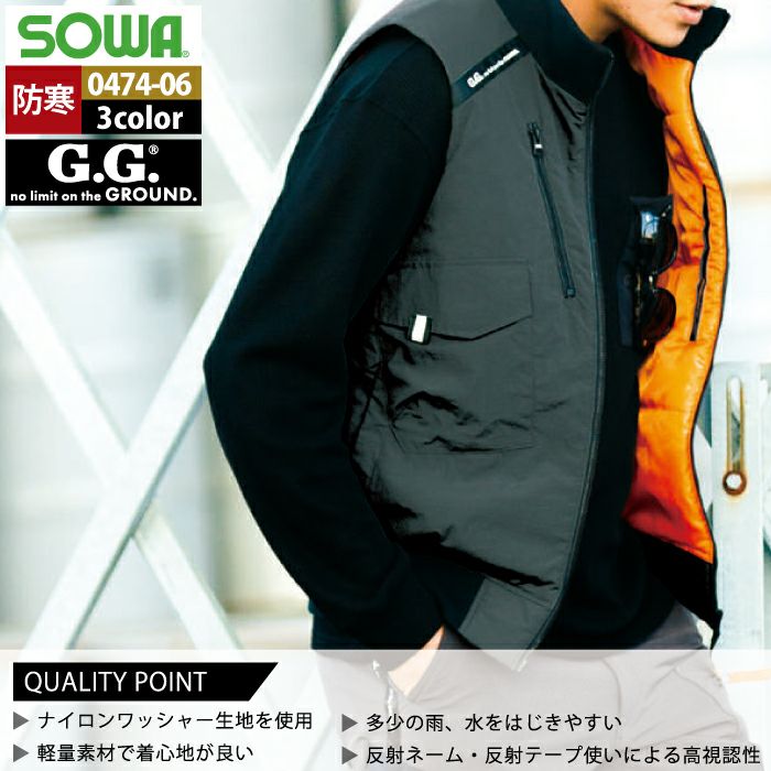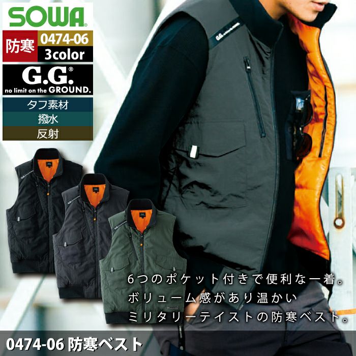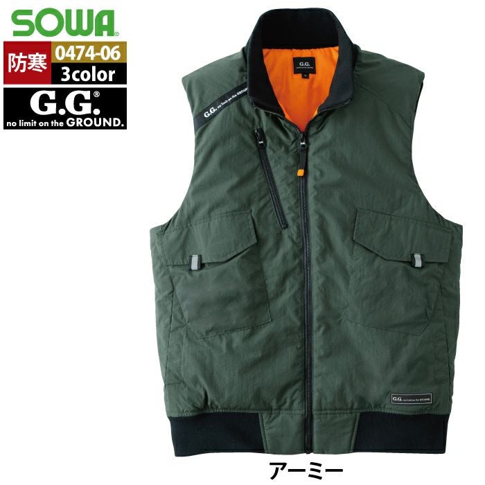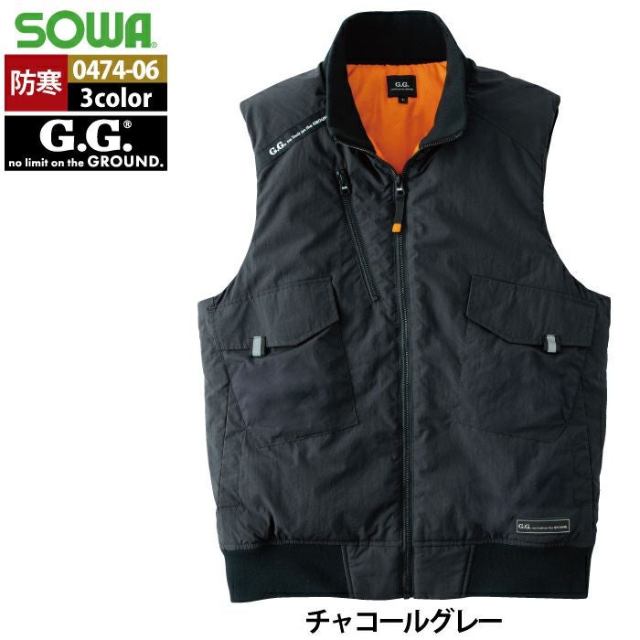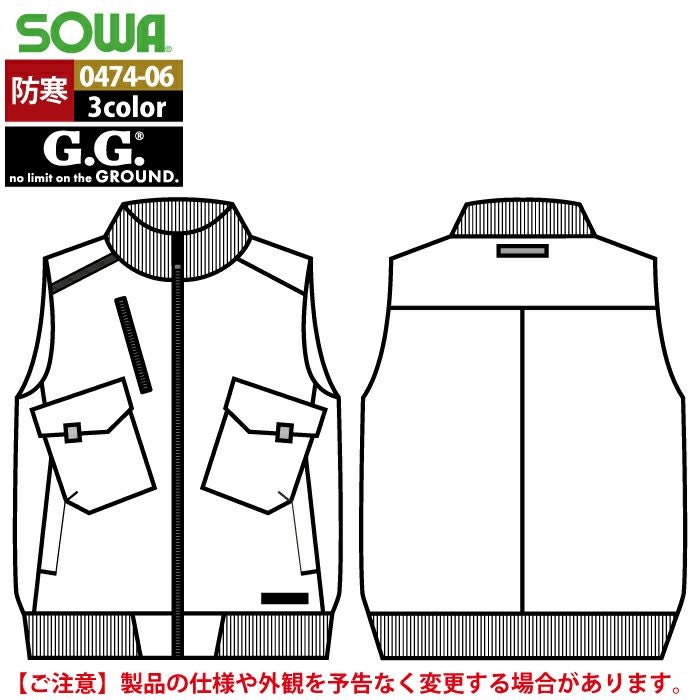桑和 SOWA 作業服 作業着 作業ズボン 桑和 SOWA 作業服 防寒着 秋冬用 0474-06 防寒ベスト 6L