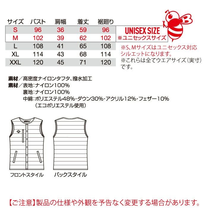 ユニセックス 撥水 保温 バートル BURTLE 作業着 防寒着 3254 ダウンベスト XXL 作業服 秋冬 TC500サーモクラフト対応