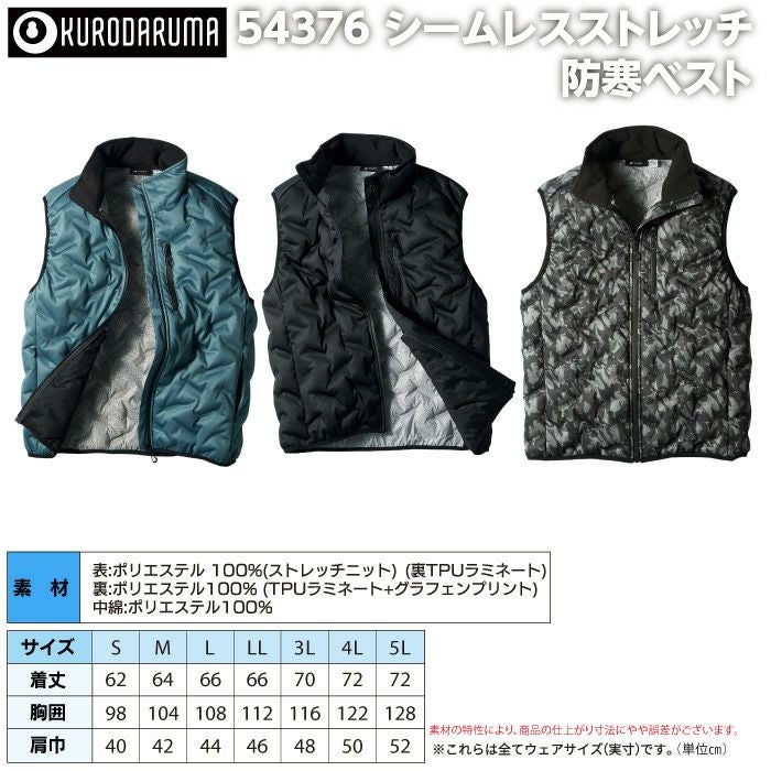 作業服 作業着 防寒着 クロダルマ 作業服 防寒着 54376 シームレスストレッチ防寒ベスト 3L-5L 秋冬用