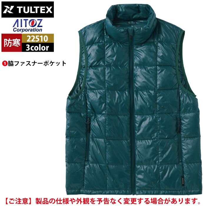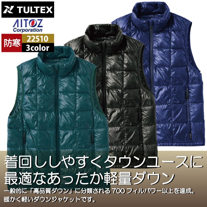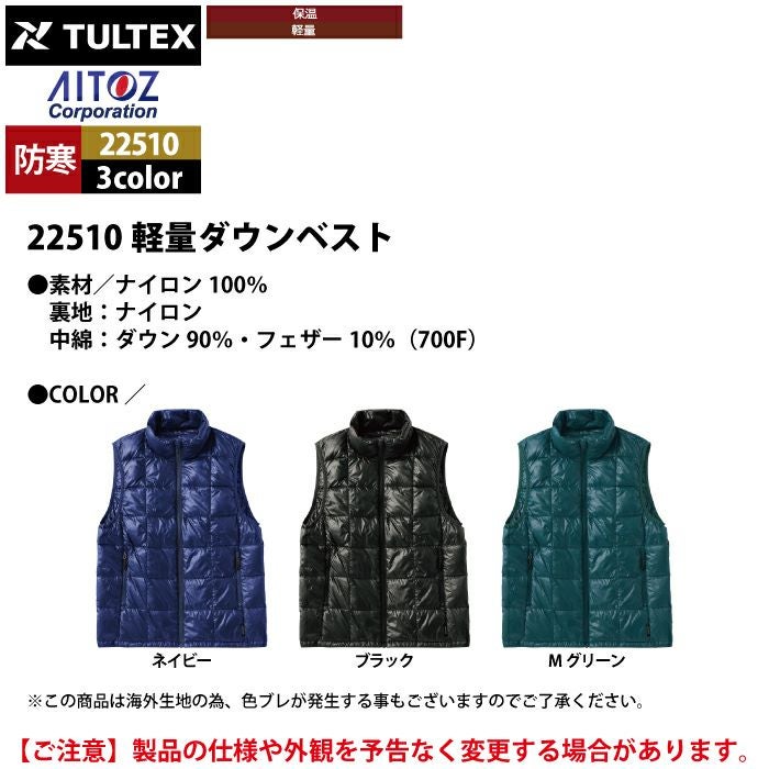 アイトス Aitoz 作業服 作業着 作業ズボン アイトス 作業服 防寒着 Aitoz 秋冬用 22510 軽量ダウンベスト M-3L