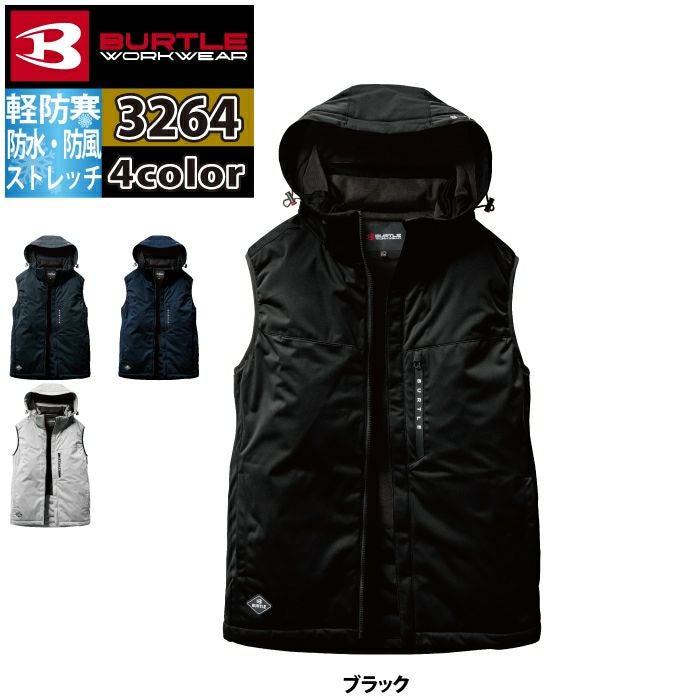 ユニセックス ストレッチ バートル BURTLE 作業着 防寒着 2024秋冬新作 3264 ストレッチフーディ防寒ベスト 3XL 作業服 おしゃれ 撥水 防風 保温
