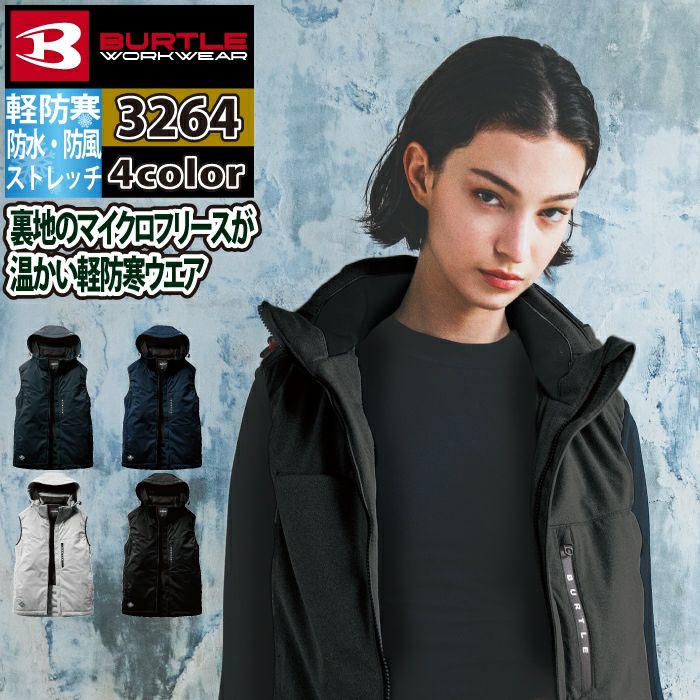 ユニセックス ストレッチ バートル BURTLE 作業着 防寒着 2024秋冬新作 3264 ストレッチフーディ防寒ベスト S-XL 作業服 おしゃれ 撥水 防風 保温