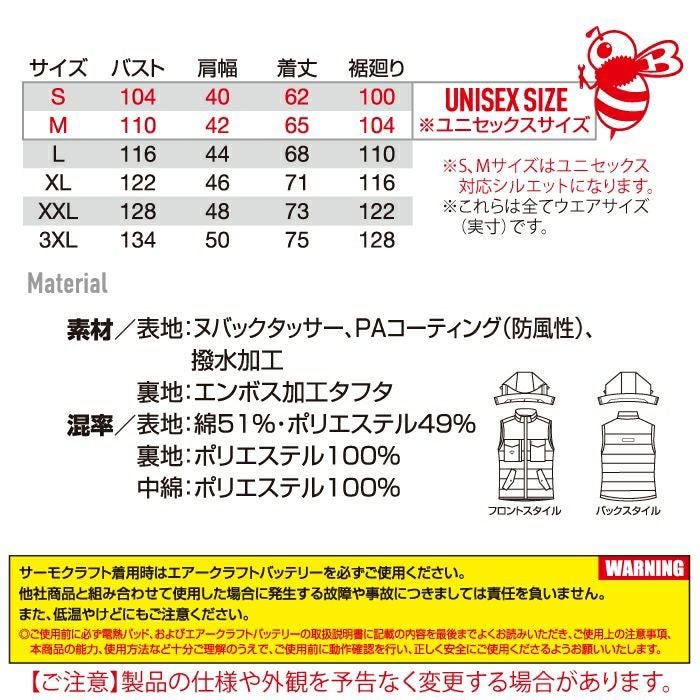 ユニセックス 防風 撥水 バートル BURTLE 作業着 防寒着 2024秋冬新作 5054 防寒ベスト XXL 作業服 TC500サーモクラフト対応 撥水 防風 保温