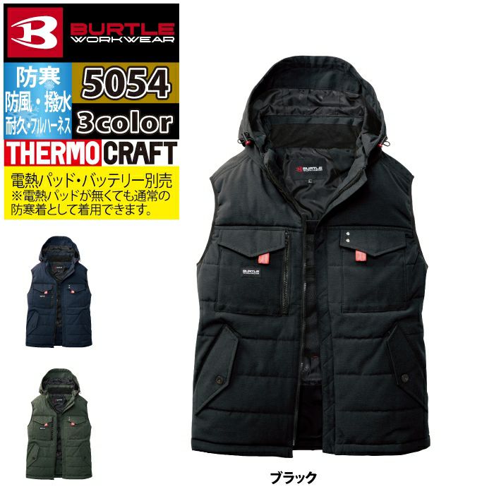 ユニセックス 防風 撥水 バートル BURTLE 作業着 防寒着 2024秋冬新作 5054 防寒ベスト 3XL 作業服 TC500サーモクラフト対応 撥水 防風 保温